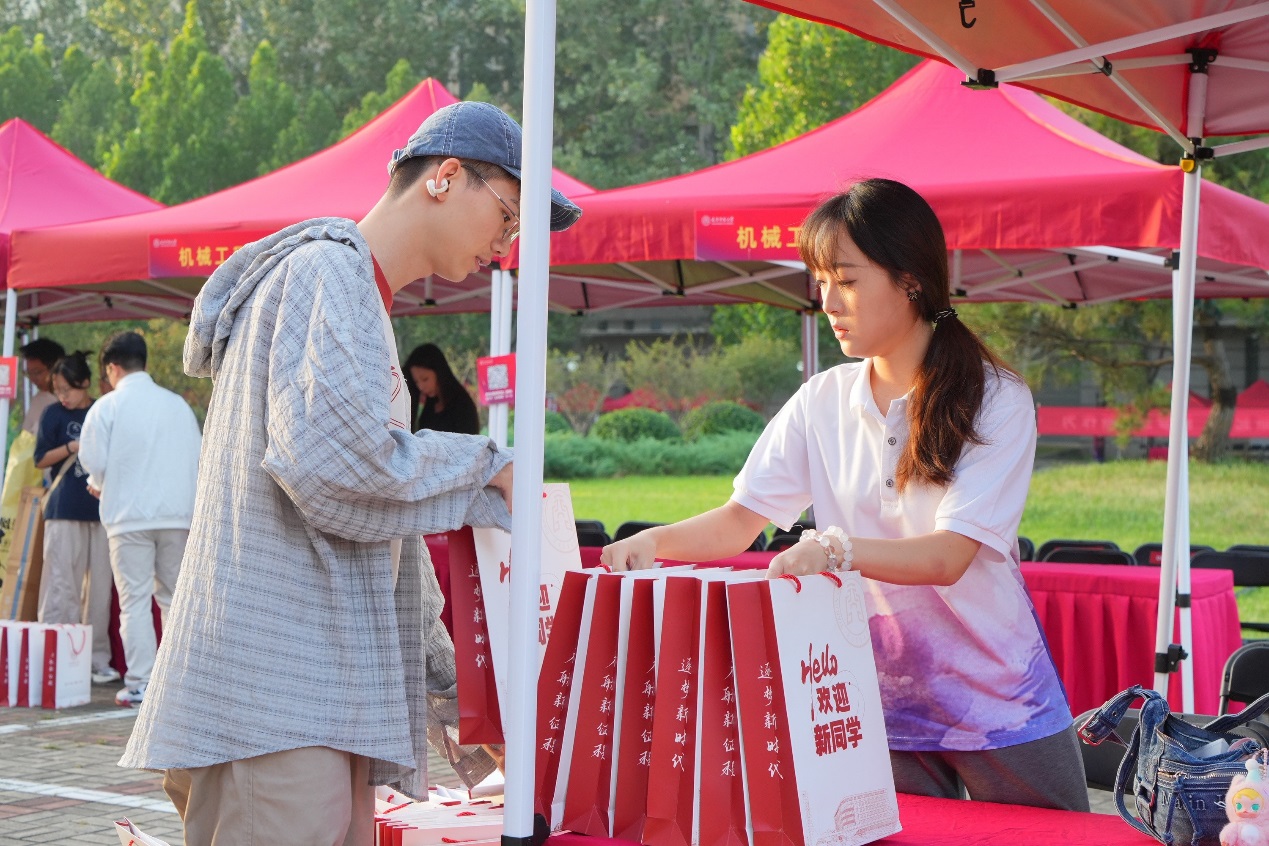 各学院于迎新前夕全面开展新生联络与志愿者培训工作,持续完善“一对一”陪伴机制,确保信息传达准确、服务响应及时。通过召开新生班主任、班助专题培训会,全心全意做好迎新准备工作。迎新报到期间,学工队伍准备了各项暖心创新服务:党委学工部为每位同学准备了由文创礼品、新生指南和心理宣传扇组成的新生礼包;生物技术与食品科学学院、机械工程学院为报到当天恰逢生日的学生送上礼物和祝福,传递学院温度;经济学院搭建迎新彩虹气球拱门,预祝新生开启多彩大学生活;公共管理学院设计了新生专属贴纸,帮助同学们增加学院归属感;信息工程学院结合学院IP文创,制作吉祥物“灵息息”落地展架……各学院通过新生入学“绿色通道”,便捷高效地为每一位家庭经济困难学生顺利入学解决后顾之忧;热情的辅导员、班主任与班助们耐心为前来报到的新生答疑解惑,用真诚热情的服务传递天商温度。