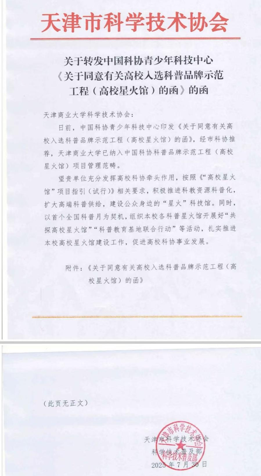 近日,中国科协青少年科技中心来函,我校成功获批全国科协科普品牌示范工程暨“高校星火馆”。