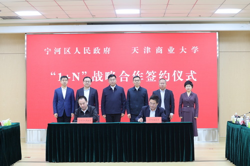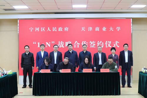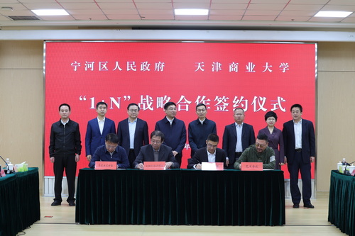 1月21日上午,天津商业大学与宁河区人民政府签署“1+N”战略合作协议。宁河区委书记白凤祥,区委副书记、一级巡视员宋建,区委常委、组织部部长陈泮成,副区长赵东亚,校党委书记张亚,校党委副书记、校长陈冠益,校党委副书记王立云、崔强出席并见证签约。