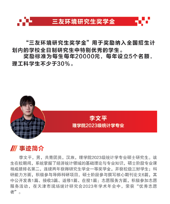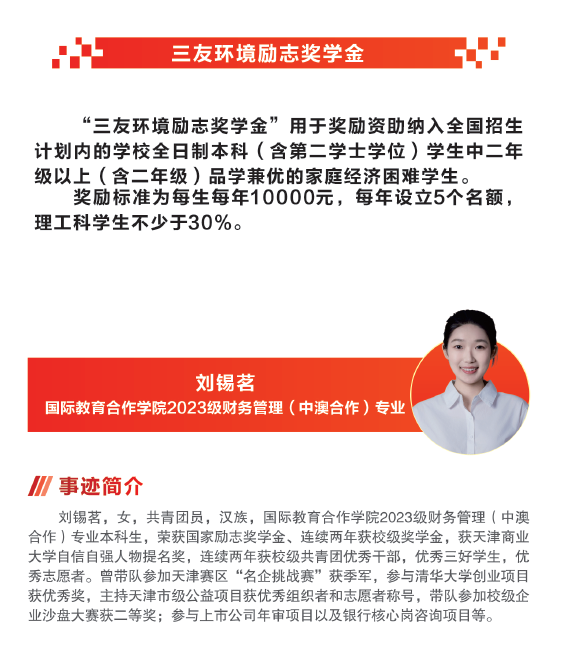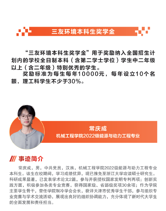 【天商好学生】首届“三友环境奖学金”候选人事迹